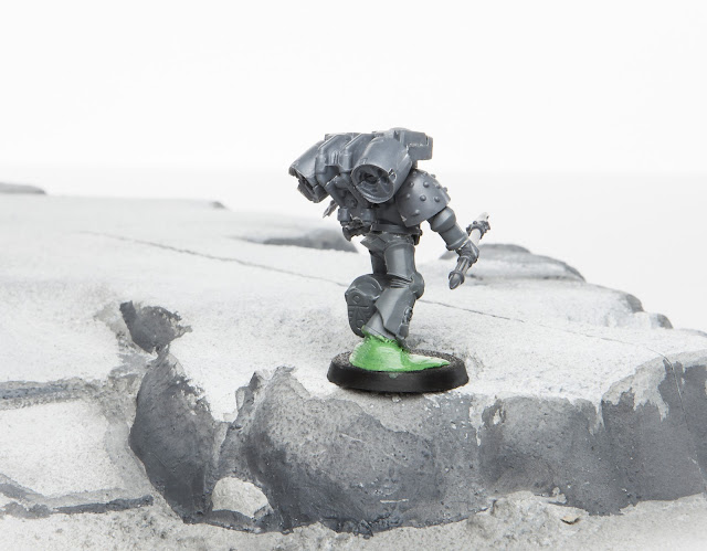 So this is guy number two from my Vet Assault Squad, he is made in much the same way as the other characters his head and body and legs are from the same kits as my other models the big difference in my vet squad is the draped fabric which I got from an high elf kit. Enjoy :)